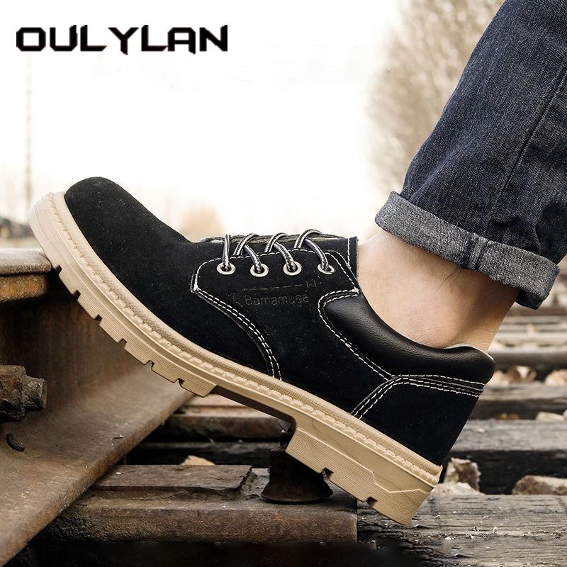 Oulylan Male Anti Smashing Work Footwear Pure Color Steel Toe Security Shoes Puncture-Proof Lace Up Safety Boots for Men