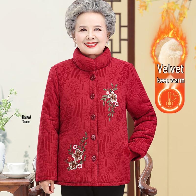 Elderly Women's Plus Velvet Winter Cotton Jacket