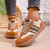 Sneakers Women Casual Shoes Women Low-Top Golden Leopard Print Lace-Up Ankle Strap Moccasin Style Shoes Minimalist All Season