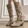 Sleeve Boots Autumn and Winter New Round Toe Suede Buckle Soft Sole Non-slip Wear-resistant Block Heel Shoes