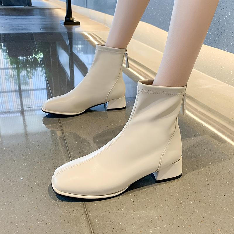 Plus Size 43 Women's Short Boots New Autumn Winter Woman British Style Soft Leather Mid-heel Mid-calf Chelsea Boots