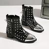 Retro Pointed Toe Western Cowboy Boots Fall New Skinny Rivet Side Zip Shorter Boots