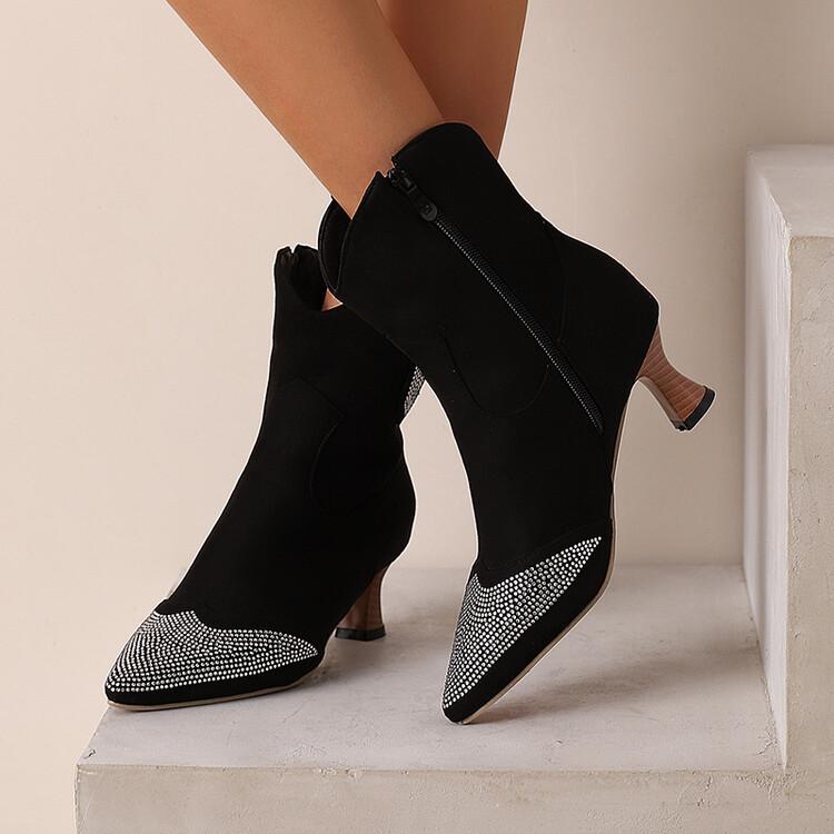 Spring Autumn Womens Ankle Boots for Women Suede Women High-heeled Boots Street Fashion Women Crystal Shoes Botines Para Mujeres