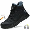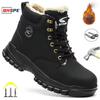 Black Leather Winter Plush Safety Work Boots For Men Waterproof Anti Nail Pressure Labor Shoes Indestructible Steel Toe Footwear