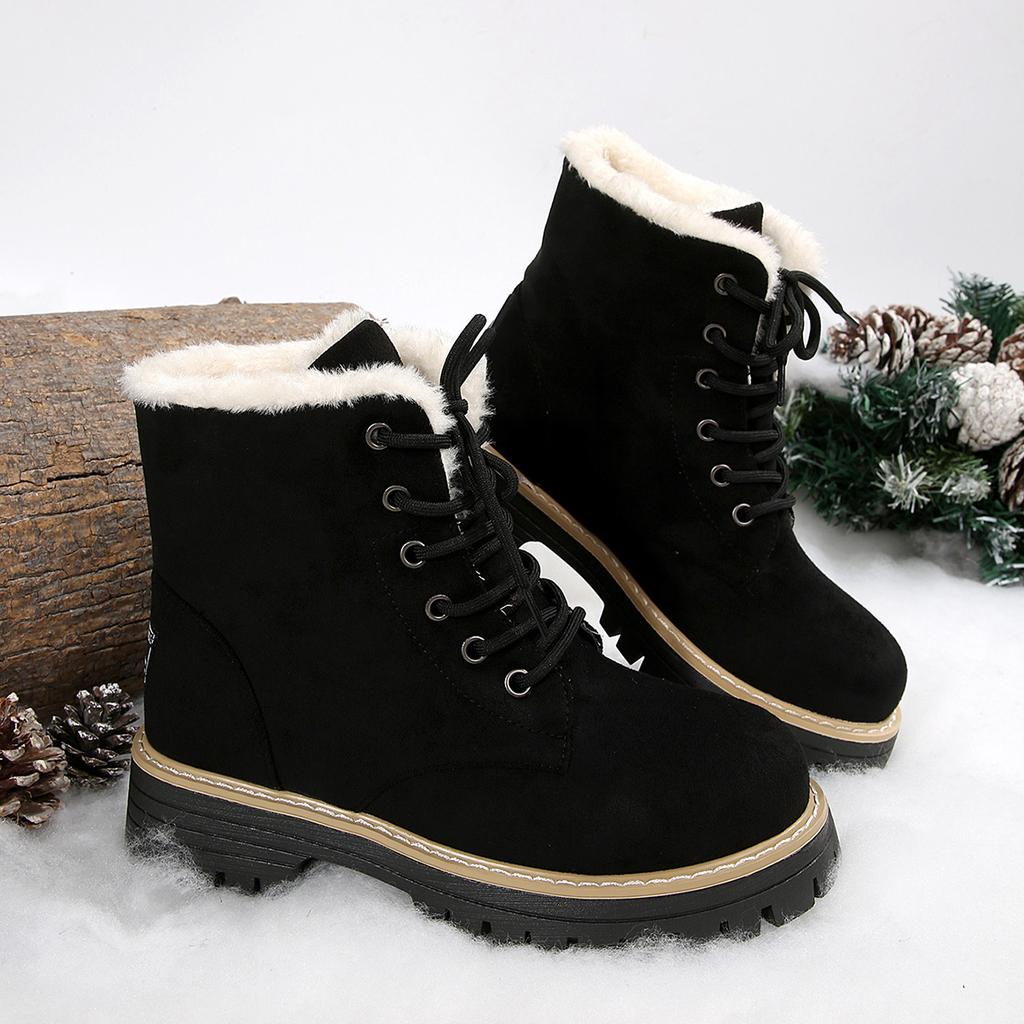 Women Warm Plush Lining Winter Ankle Boots High Top Thick Bottom Snow Boots Woman Plus Size 43 Lace Up Platform Cotton Shoes