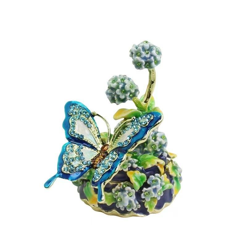 Metal Craft Enamel Ornament Blue Butterfly flowersJewelry Box Trinket counter decoration bithday gift trinket box for home decor