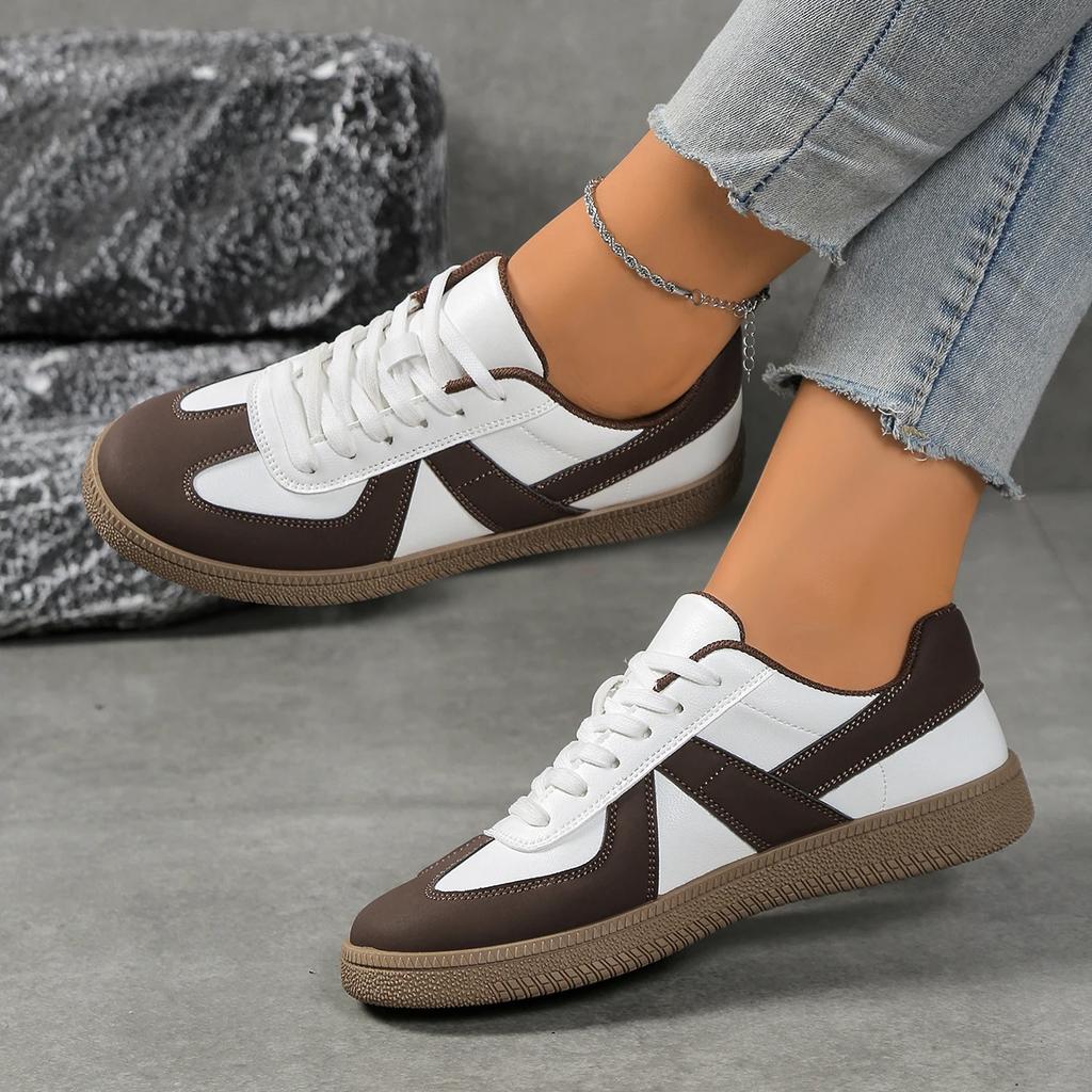 Women's lightweight synthetic fiber sports shoes - lace up, anti slip and wear-resistant sole, comfortable casual shoes