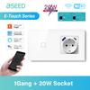 BSEED 1/2/3/4Gang WIFI Dotykový vypínač Skleněný Chytrý nástěnný vypínač Dotyková obrazovka Podsvícení Telefon Rychlé nabíjení USB C Zásuvka Řada E