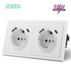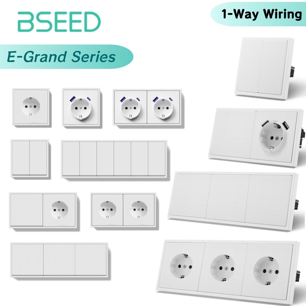 BSEED EU Large Button Wall Switches 1/2Gang 1Way Wall Power Sockets Dual USB Phone Charge Port 5V White Home E-Series