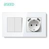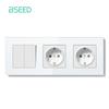 BSEED Switch Light Switch White Glass Frame Wall Power Sockets USB-C Phone Charge E-Series EU Standard 2 Way