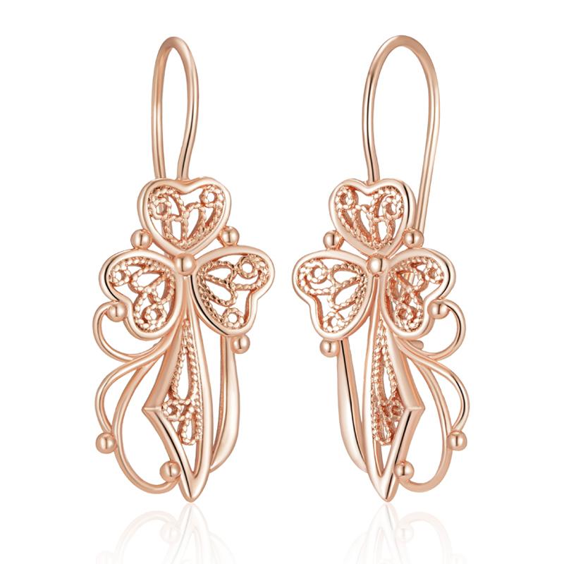 Unique Glossy Dangle Earrings For Women Fashion Rose Gold Color Metal Flower High Quality Daily Fine Jewelry