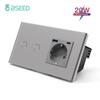 BSEED 1/2/3pólový dotykový vypínač světla 1pólový senzorový vypínač se zásuvkou EU USB Type-C 20W rychlé nabíjení Modré podsvícení Skleněný panel
