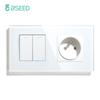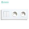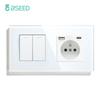 BSEED 1/2/3Gang Mechanical Wall Light Switch 1Way Plus French Socket USB Type-c Ports USB Power Sockets Glass Frame 16A
