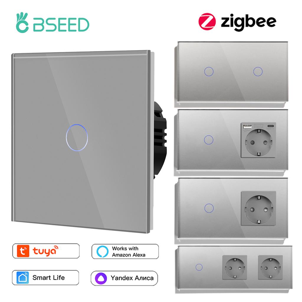 BSEED Zigbee 1/2/3Gang Touch Light Switch 1/2/3Way Sensor Switches With EU Type-c USB Sockets Tuya Smart Life Alexa Control