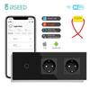 BSEED 1/2/3Gang Wifi Touch Light Switches Tuya Smart Life Alexa App With EU Sockets Power USB Ports Capacitor Included Black