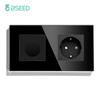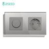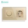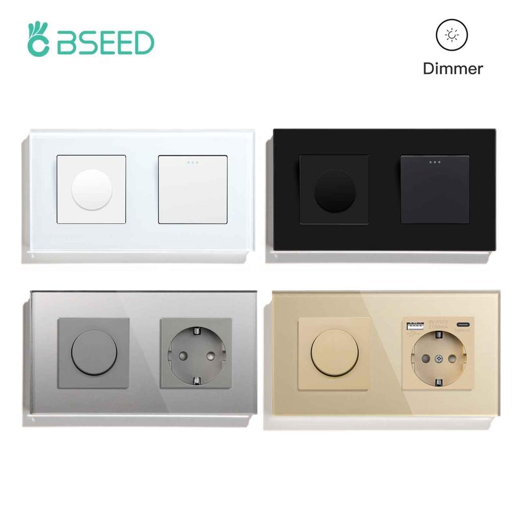 BSEED Mechanical Dimmer Fan Switch With 1/2/3Gang Wall Light Switches EU Socket USB Type-c Power Ports 2.1A Glass Panel