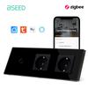 BSEED Zigbee 1/2/3Gang Wall Touch Switches With Normal EU Socket USB Type-C Ports Tuya Smart Life App Ccontrol Glass Panel