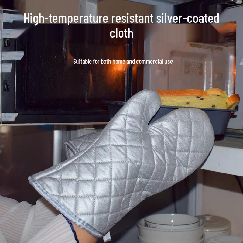 Minai Heat Resistant Oven Mitts, Silver (Pair)