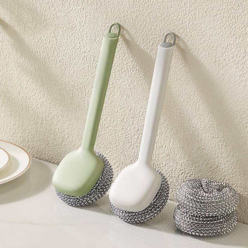 Dongxi Long Handle Stainless Steel Pot Brush with Steel Wire Scrubber