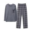 Podzimní zimní pánské domácí obleky s dlouhým rukávem, kalhoty, obleky, pyžama pro muže, pletené bavlněné kostkované pyžamo