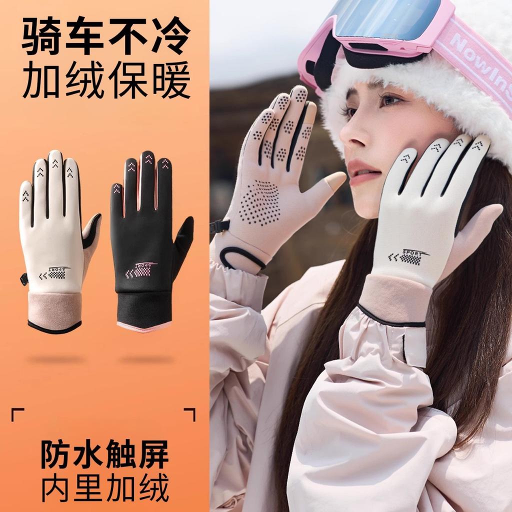 Touchscreen takeaway riding gloves women's winter waterproof and cold men's winter windproof and warm fleece cold-proof electric car