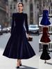 Vysoce kvalitní podzim Zima Ženy Vintage Palace Sametové společenské šaty Módní stojáček Dlouhé Midi Ležérní Velurové šaty