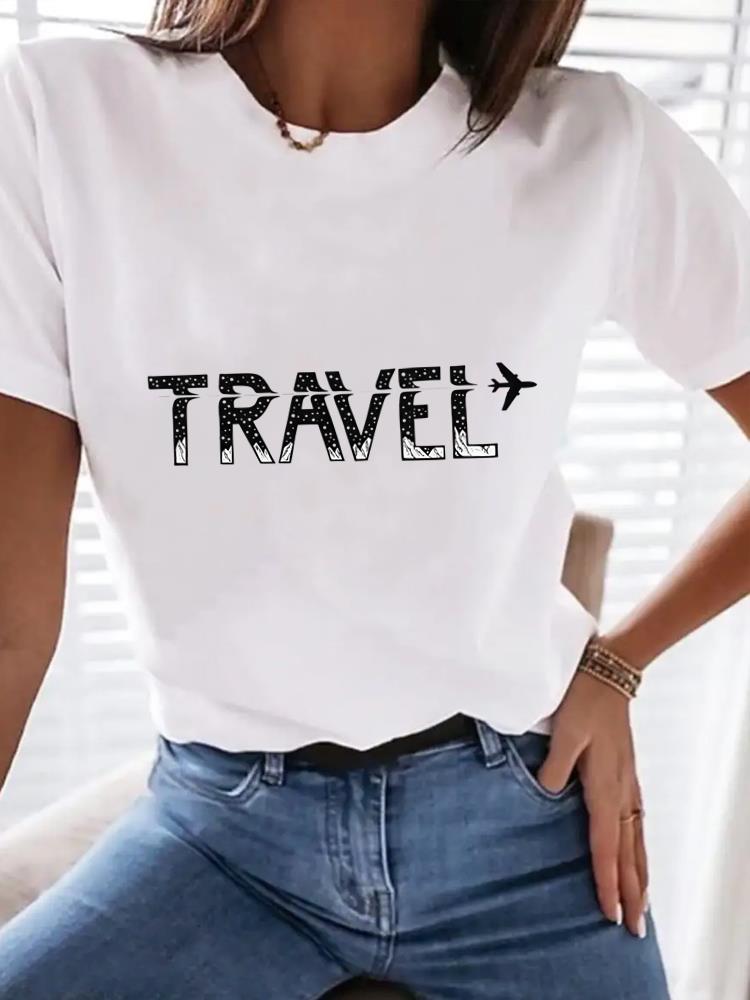 (Asian Size) letter style 90s Women Clothing T Shirt Woman Top Fashion Female Short Sleeve Graphic T-shirts Print Tee
