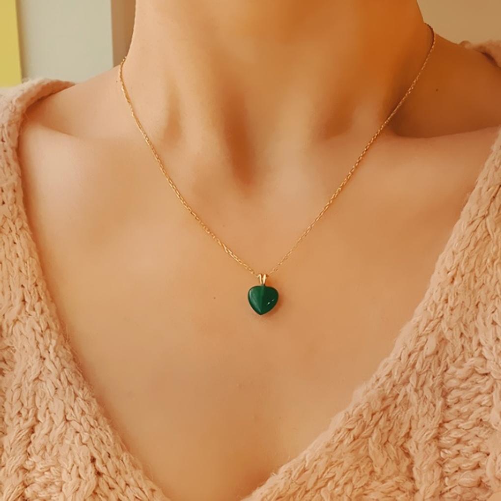 Women's 92.5 Silver 16K Plated Raw Stone Ballroom Heart Necklace