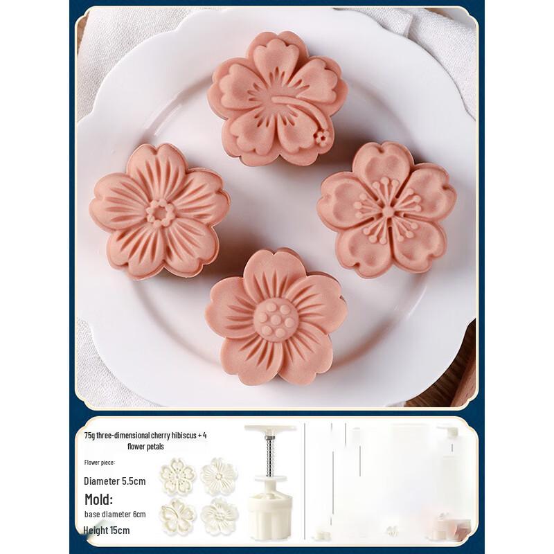 Hand-Press Mooncake Mold Set with 4 Floral 3D Patterns (75g)