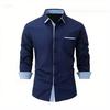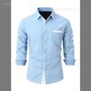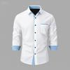 2025 Fashionable Men's Four-Way Stretch Men's Shirt Color Block Business Slim Long Sleeve High-End Shirt