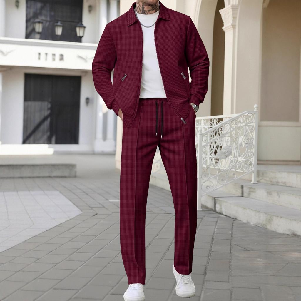 Spring and Autumn New Men's Waffle Drawstring Sports and Casual Pants Suit