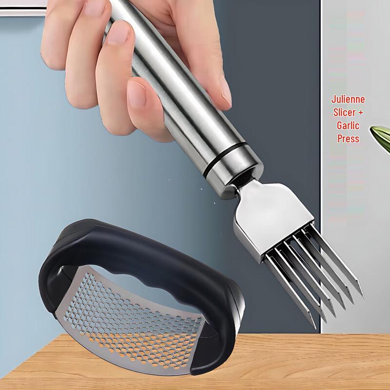 Multifunction Stainless Steel Scallion Shredder & Garlic Press