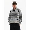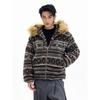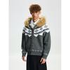 Dream Made Fur Collar Hooded Fair Isle Cardigan Sweater for Men, Autumn and Winter Thickened Couple Knitwear Jacket
