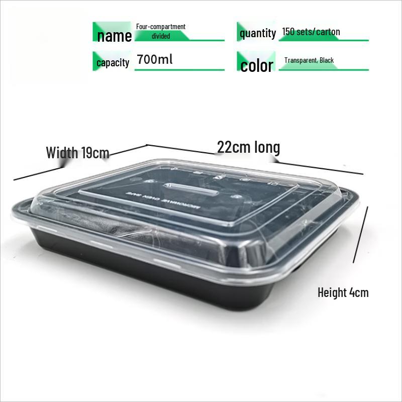Disposable Rectangular 4-Compartment Meal Prep Containers with Lids