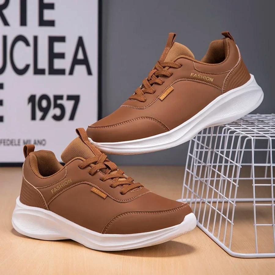 Men's Sneakers Lace-Up Platform Casual Sneakers Man Comfort Lightweight Running Shoes For Men Vintage Style Leather Casual Shoes