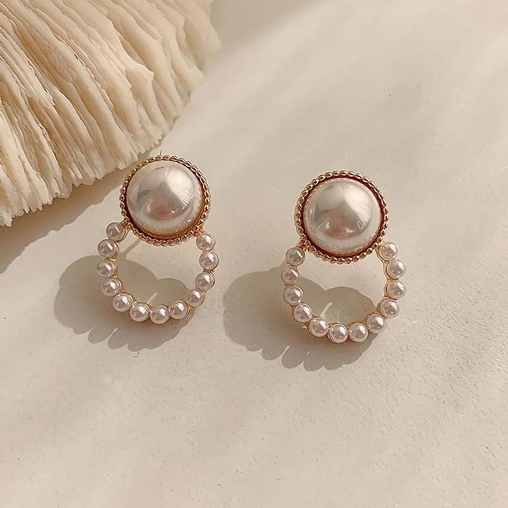 Silver Needle Pearl Freshwater Earrings, Earrings Chain, Big Drop Hook