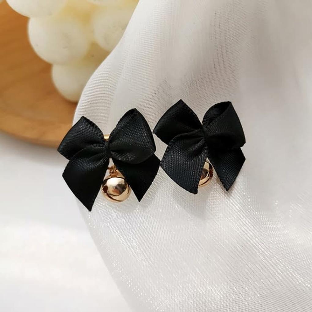 Silver Needle Earrings, Chain, Daily Bell Ribbon