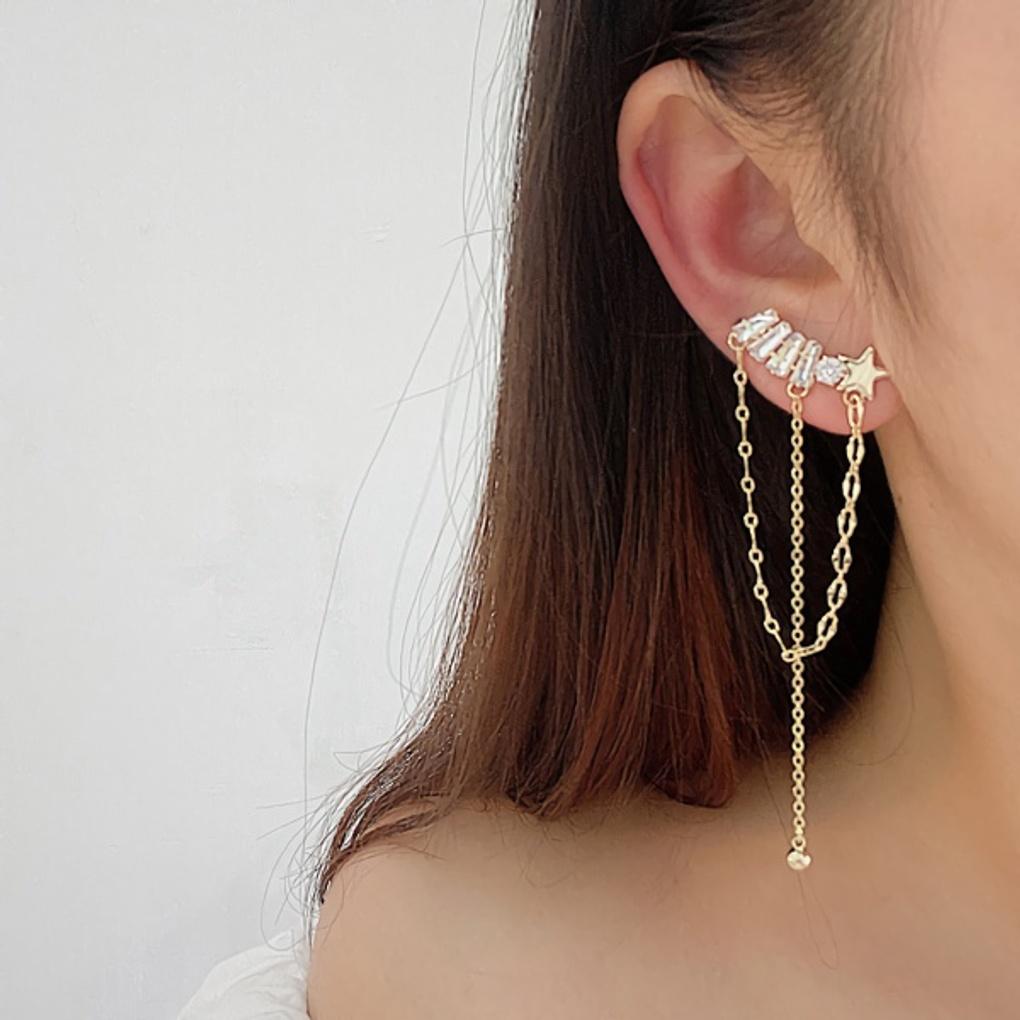 Women's Star Cubic Xylophone Long Earrings Silver Needle