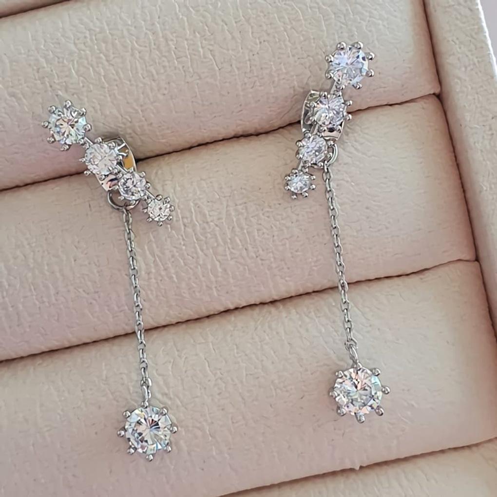 Women's 925 Silver Needle Level Cubic Line Earrings