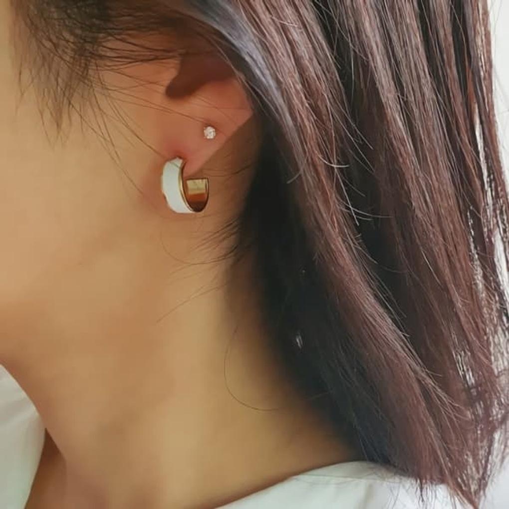 Women's Daily Epoch Mini Ring Titanium Needle Earrings