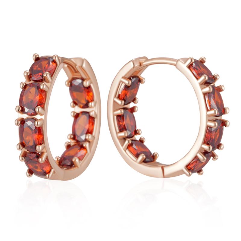 Full Red Natural Zircon Hoop Earrings For Women Trendy Rose Gold Color Vintage Bride Wedding Jewelry Best Gift