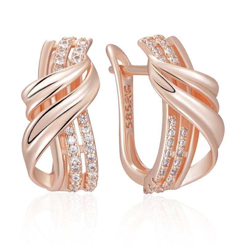 Rose Gold Color Ethnic Bride Drop Earrings For Women Unique Geometry Natural Zircon Accessories Daily Fine Jewelry