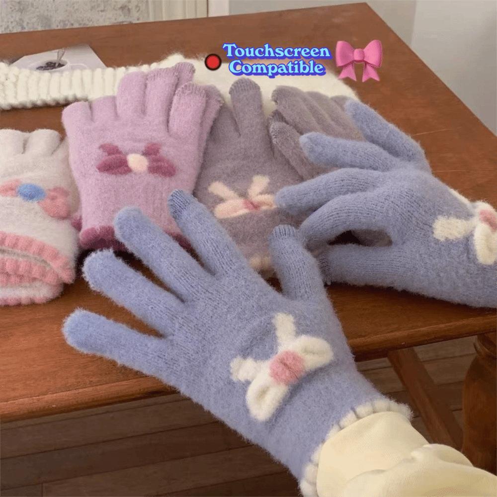 Cute Keep Warm Knitted Gloves Windproof with Five Fingers Winter Gloves Cold Protection Stretch Knit Mittens Girl Women