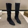 Dámské kovbojské boty s špičatou špičkou, módní nazouvací jezdecké kozačky, čtvercové podpatky, podzimní zimní obuv