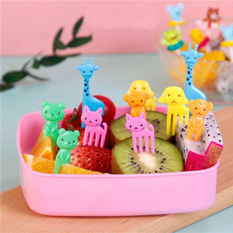 Animal Farm Fruit Fork Mini Cartoon Children Snack Cake Dessert Food Fruit Pick Toothpick Bento Lunches Random Color Party Decor