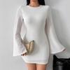 Women Evening Party Flare Sleeve Flat Shoulder Solid Color Bodycon Mini Package Hip Dress