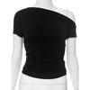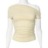 Summer Short Sleeve Slim Fit Casual Crop Tops New Slanted Shoulder Street Wear Women T-shirt Fashion Pleated T Shirt Solid Short Tees