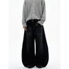 Kisko American Retro Denim Black Washed Baggy Scimitar Jeans Unisex Trendy Brand Cool Wide-Leg Pants