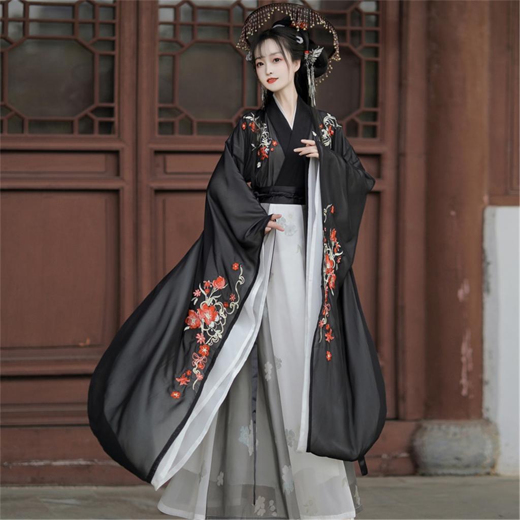 Chinese Wei, Jin, Southern And Northern Dynasties Style Hanfu For Women Wide Sleeves, Waist-length Cross-collar One-piece Skirt Modified Suit