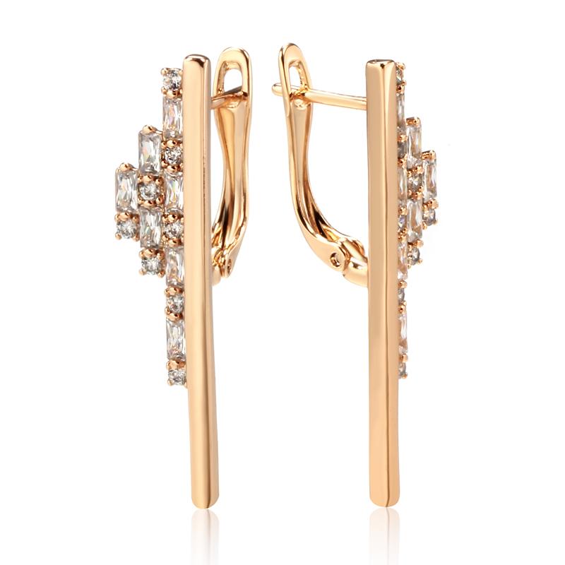 Luxury Rose Gold Color Unique Long Dangle Earrings For Women Fashion Natural Zircon Party Fine Party Daily Jewelry